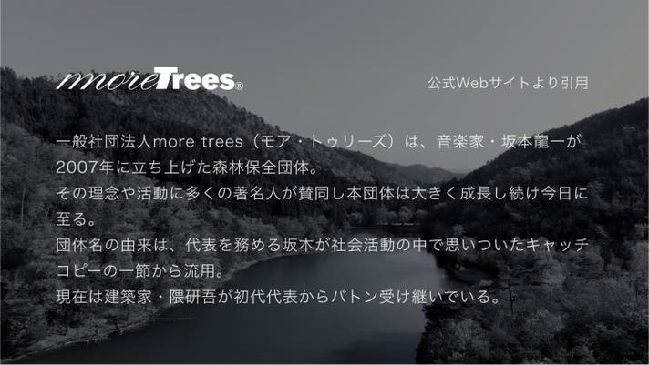 また、その信念のもと、利益の一部を自然環境保護団体(moreTrees)を通じて地球へ還元することも、企業として果たすべき責務であると考え実行してまいりました。
