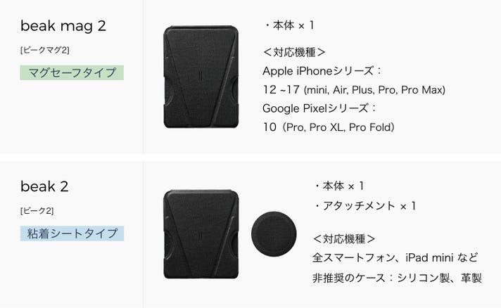 そのため、マグネティックタイプの「beak mag 2」と比べより汎用性のある使い方が可能です。