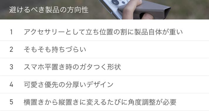・躯体が大きく重いスマホには適しません。(重量380gまで推奨)