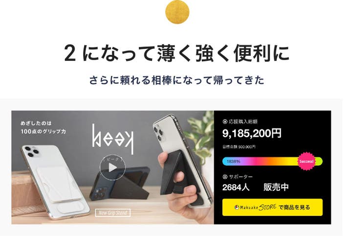 2021年から提唱してきた新しい選択肢「グリップスタンド」は"新ジャンル"として一定数の指示を得てきました。この度、ジェルシート版・マグセーフ版それぞれで更なる使い心地の高みへと誘う「2」を応援いただきたくマクアケを実行させていただきます。