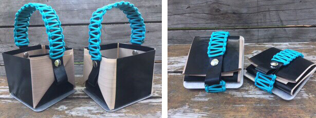 持ち手はアウトドアではお馴染みのパラコード=パラシュートコードです。(非常に丈夫且つ伸縮性のあるヒモ)