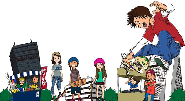 ▲大人から子供、初心者から世界ランカーまで、みんなでスケボー!