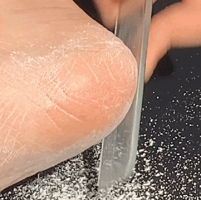 step1. 洗う前に乾燥した状態の足の角質を除去してください。