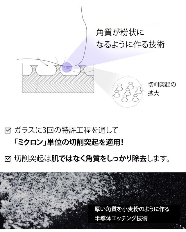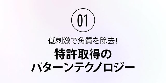 - 特許を取得したパターン技術で肌に傷をつけず角質だけを除去!