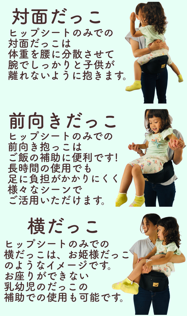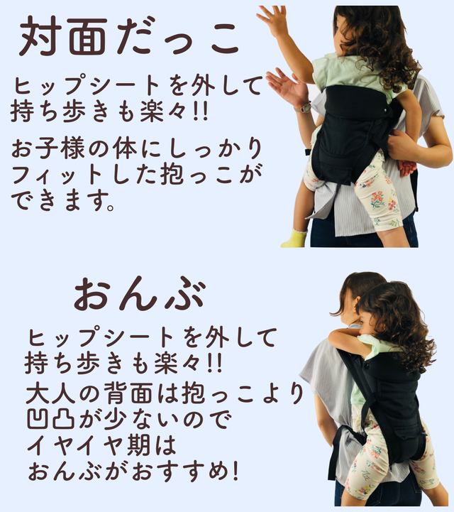 ヒップシートと抱っこ紐部分のセットでの使用や、