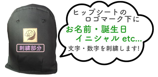 ※刺繍箇所は抱っこ紐のヒップシートのロゴ下に縦2~4cm*横5cm~10cm刺繍いたします。