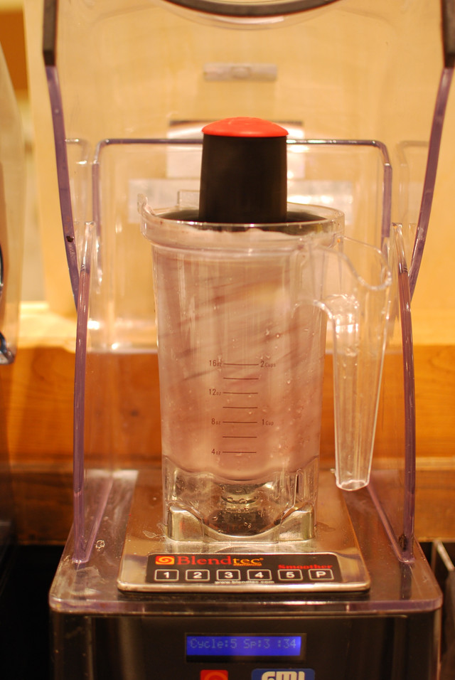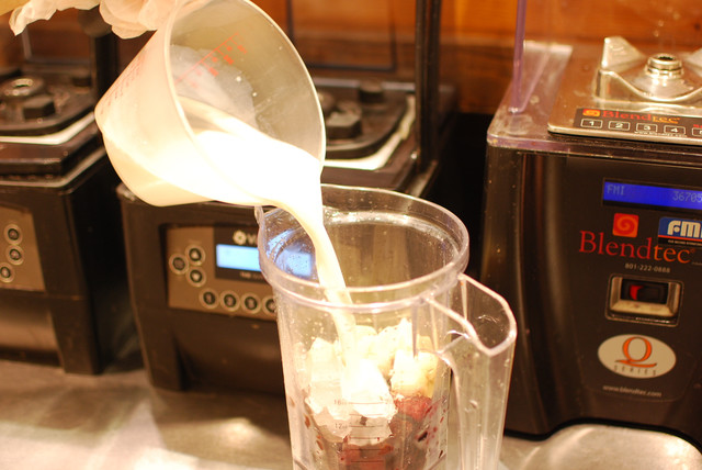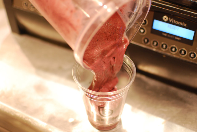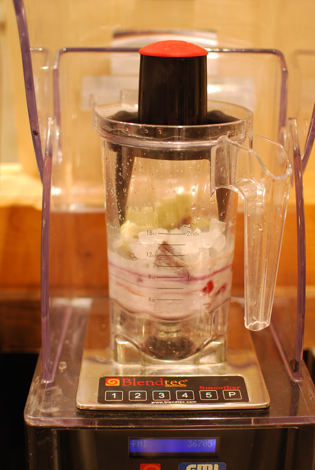 専用ブレンダーで撹拌したスムージーをそのままスパウトパックに充填しますのでお店の味をそのままお届けいたします。