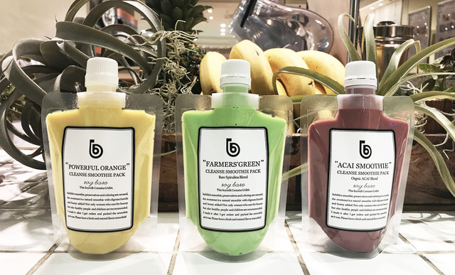 商品は、保存料、着色料を使用しないスーパーフードを入れた健康的な出来立てスパウトスムージー!