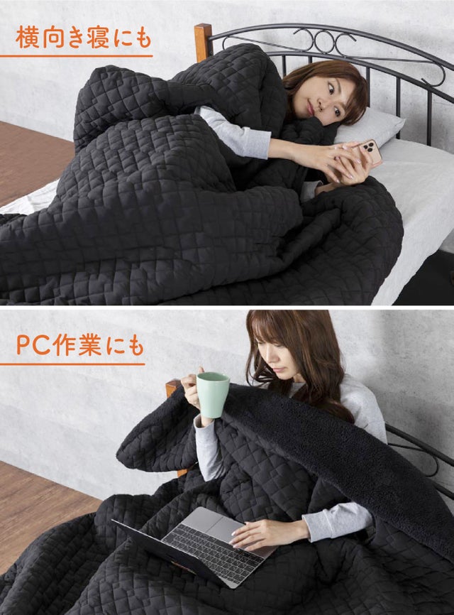 スマホを見ながらぬくぬくの布団にゴロリ〜。そんな夢を叶える掛け布団が登場!!2カ所に開いたアームホールから腕を通せば、胸元や肩口までしっかり布団をかぶせたまま、腕だけ布団の外に出すことができスマホを快適に触れます。軽くて機能性に優れた素材と肌面のあったかい起毛ボアが体を優しく包み込ます。