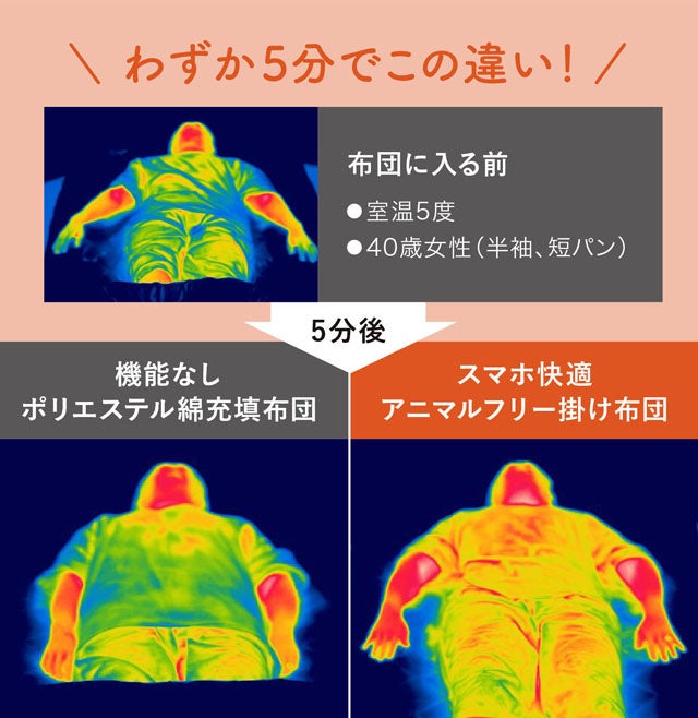 ・スマホ快適アニマルフリー掛け布団に5分経過後に検証(添付有)