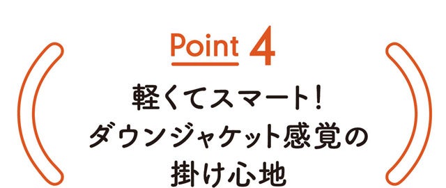 羽毛に代わる素材として、近年脚光を浴びている人工羽毛。その多様な素材の中から、選りすぐりの2種類のハイテク素材を採用しました。それらを組み合わせることにより、より快適性の高い暖かさを実現しています。