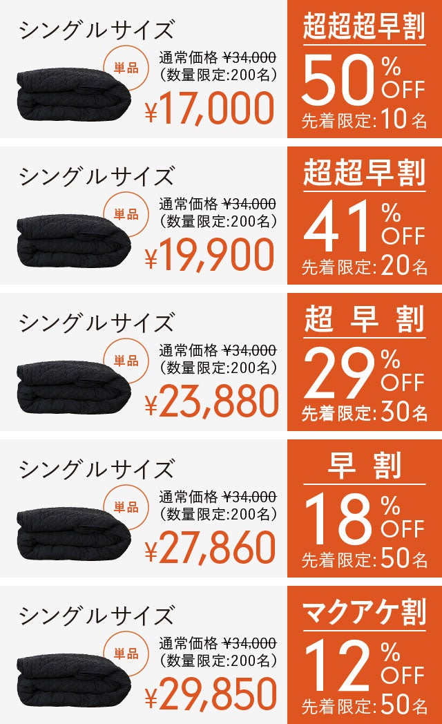 【早割/先着50名】シングルサイズ(単品)