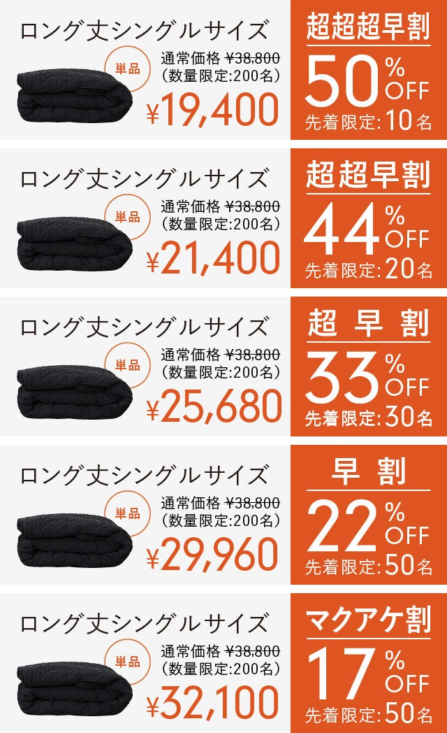 【早割/先着50名】ロング丈シングルサイズ(単品)