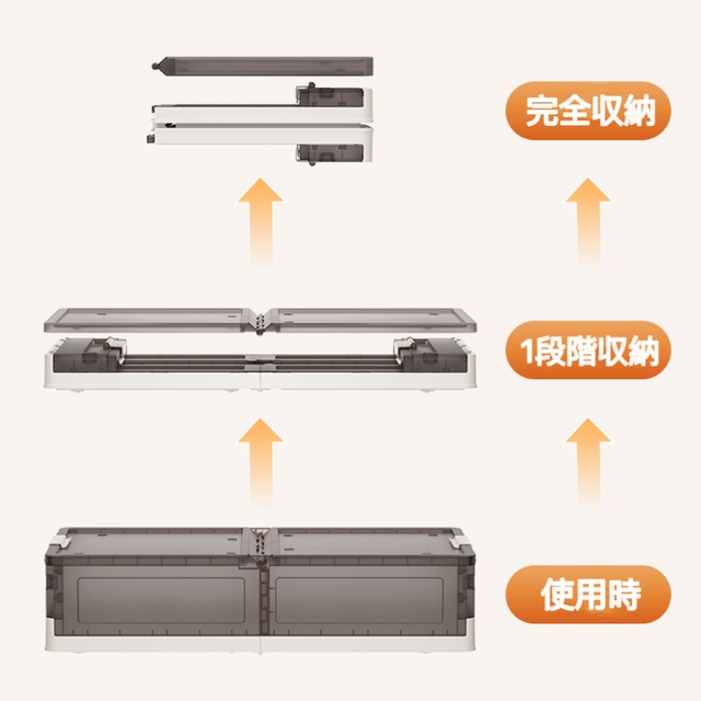 2段階折りたたみ可能なボックス!1段階収納にすると組み立てがより簡単にでき、完全に折り畳めると、とてもコンパクトに収納できます。