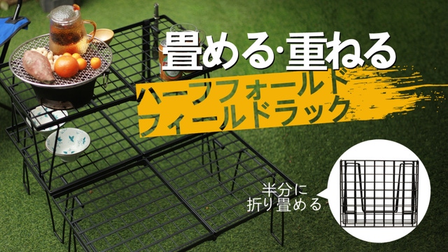 半分に折り畳み可能でコンパクト!重ねて・並べて自由自在!スチールフィールドラック