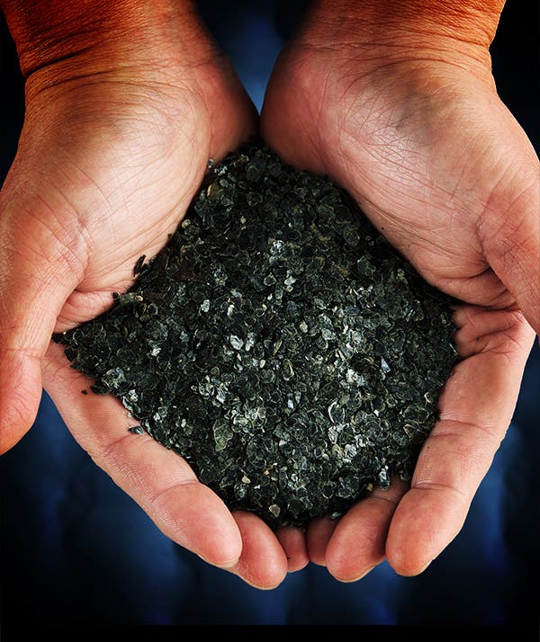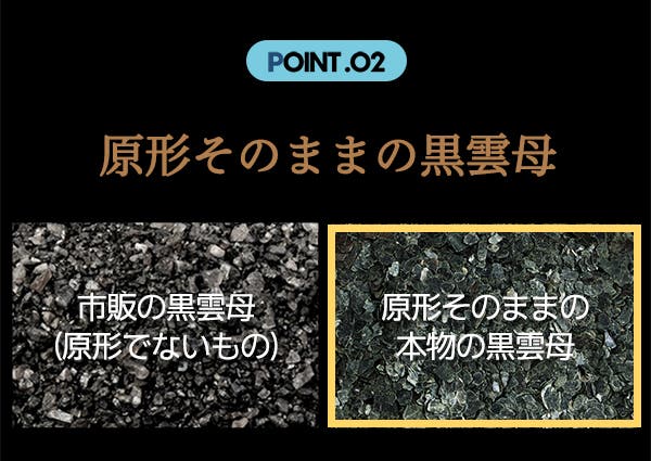 黒雲母は希少鉱物で、鉱山から採掘された原形の粒子は、石片のような形ではなく、光沢のある薄いフレーク状です。
