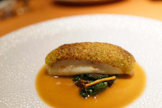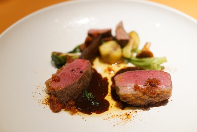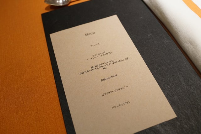 旬でしか味わえない贅沢なランチコース「ムニュ・ロゼッタ」7千700円のコースは、シェフのお任せ。お魚料理とお肉料理が両方出て、全7皿です。