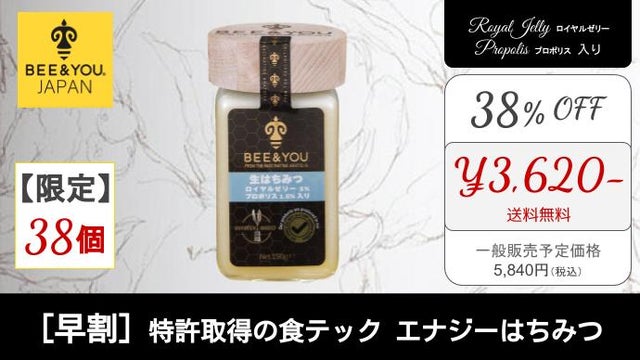 早割【38個限定】特許取得の食テック エナジーはちみつ【38%OFF】