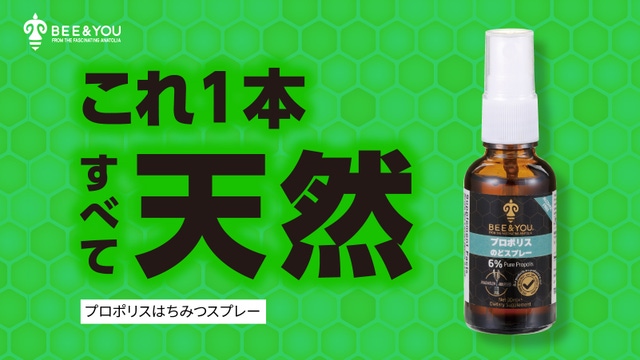 私が、BEE&YOU製品の中で、最初にハマったのが「プロポリスはちみつスプレー」です。食品だから日常的に使えることはもちろん、のどのケアが必要な時には持ち歩いてシュシュっとしてもらえると、きっと今までの「プロポリスはちみつスプレー」の概念は大きく変わるかもしれません。是非手にとっていただけると嬉しいです。
