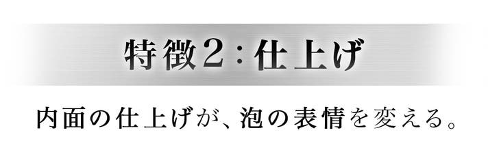- 鏡面研磨のなめらかな内面が泡を整え、ビールのまろやかな旨さを引き立てる。