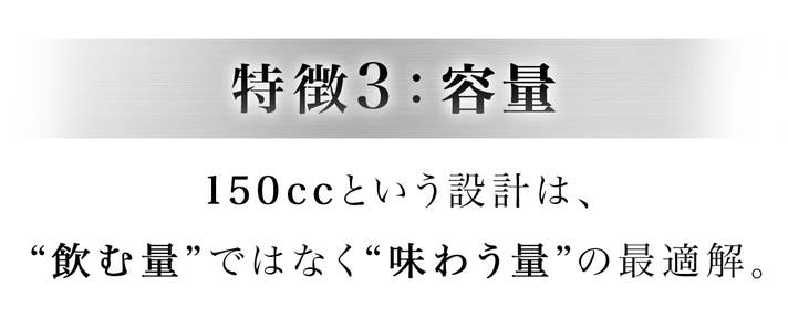 A. IBUKIは、量をたくさん飲むためではなく、一口ごとの完成度を高めるためのサイズとして150ccを採用しています。