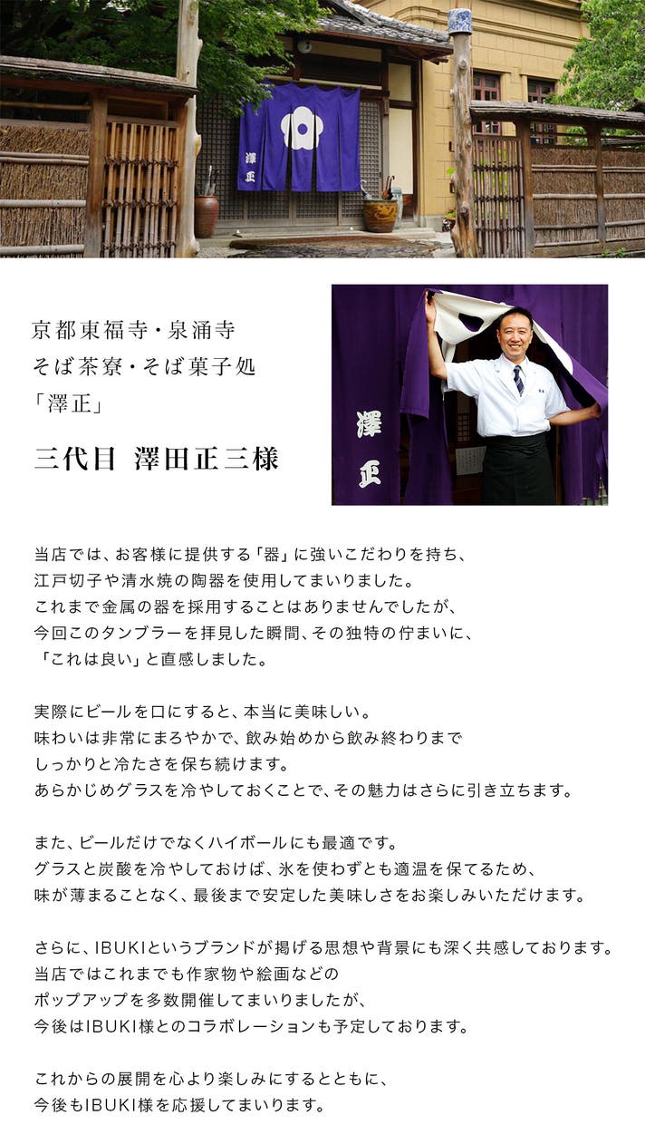 A. IBUKIは、ただ飲み物を注ぐための器ではなく、“一杯をより美味しく味わうための器”として設計されています。