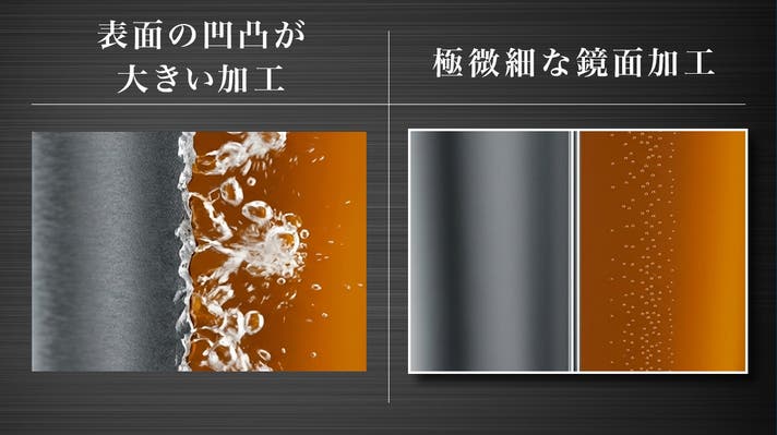 さらに、内面の鏡面研磨によって