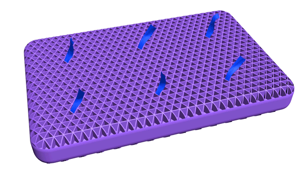 1. 構造はユニーク。見た目でこれまで流通してきた商品との違いをすぐに認知できます。何百個もの三角格子が並べられて成形したものです。睡眠時に頭部にかかる圧力の集中が少なくなり、圧迫が緩和できます。