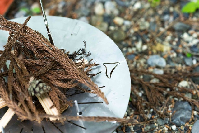 木や枝を拾って使ったり、薪を割って使ったりする場面で、円盤の大きさは何センチがベストなのかを何度も何度も実験して、30cmという大きさが丁度いいのではないかと決定しました。30cmの直径であれば、薪を割らなくても焚き火ができるギリギリの大きさになりますので、薪をそのまま焚き火を楽しむ事も可能です。