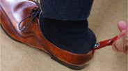 試してみるとフック状の金具で靴の後端を軽く引けば、自然にかかとがすっと滑り込むことを発見。