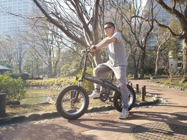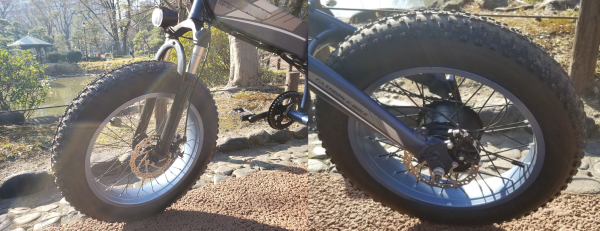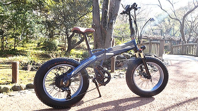 - 幅10センチ強の極太タイヤで安定感抜群!しかも折りたたみ可能でコンパクトにもなるE-BIKE!