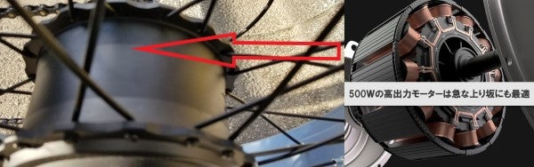 500Wハイパワーブラシレスモーターが送ってくれる超強力アシスト。