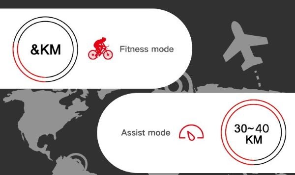 一度の充電(約4時間)で40㎞~60㎞電動アシストが可能です(乗り方、乗る場所により異なります)。