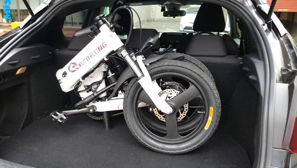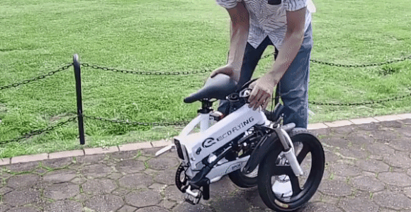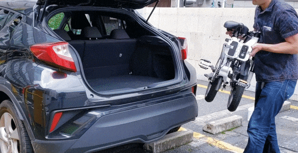 - 折りたたんで自動車等で簡単持ち運びOK。7段ギア+両輪サスペンションも付いて快適走行をアシスト