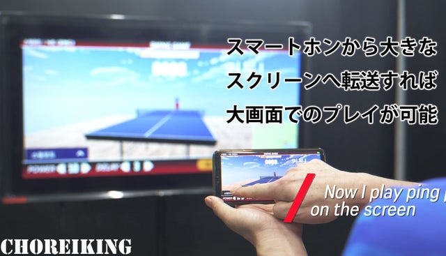 スマートホンをはじめ、Choreikingアプリをインストール出来れば様々なスクリーンでトレーニングが行え、球を使わずラケットのみで一人でバーチャル卓球が楽しめます。