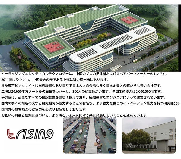 イーライジング社は2011年に設立され掃除機をメインに製造を手掛ける電化製品のプロ集団です。古くから日本との親交も強く、日本の展示会にも出店しており会話も日本語が通じる為より細かいコミュニケーションを図る事が可能です。ユーザーからフィードバックされる意見をより細かく聞き入れ、お互いが明るい未来に向けて発展出来る事を望んでいます。