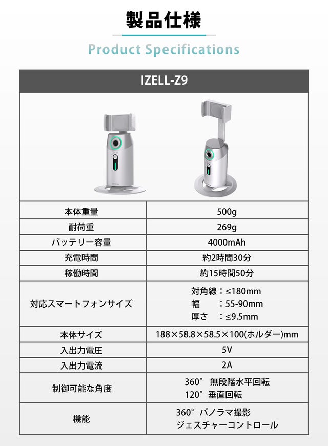 IZELL-Z9はスマートフォンのアプリを使用せずに360度追跡撮影が可能です。