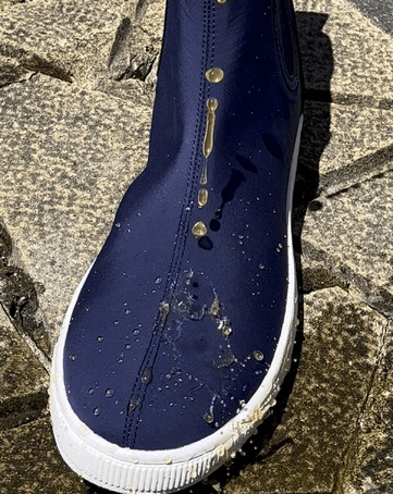 コロコロさらさら面白いほど水滴が転がり落ちる!すごい撥水素材の防水シューズ。