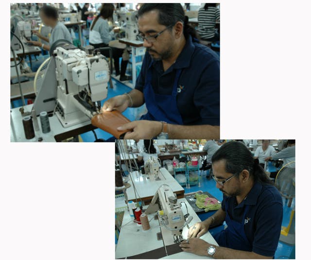 年数回、数週間の滞在を繰り返し、技術指導を続けてきました。当時、20歳前後だった若い工員さん達も、今では立派な技術を身に着け、お財布づくりに励んでいます。