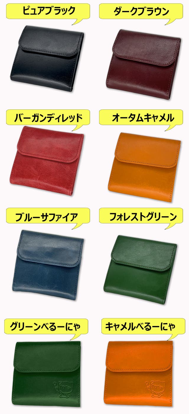 高級感のある牛革を使用、6色+べるーにゃ2色のバリエーション