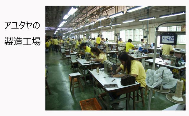 世界遺産にも登録されている街の近くにアユタヤ工場があります。工場では、約100名のスタッフにより、一つ一つ手作業により製品が作られていきます。