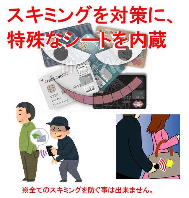 ※お財布の上からスキミングで 情報をコピーされてしまう事を防ぐためのシートが、お財布には内蔵されております。