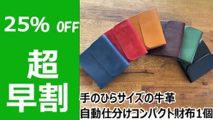 牛革自動仕分けコンパクト財布【超早割25%OFF】税込み・送料込み