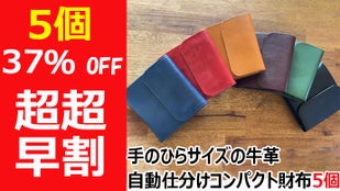 【超超早割】手のひらサイズの牛革自動仕分けコンパクト財布 5個