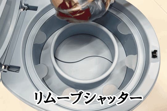 - 悪臭を閉じ込める専用ごみ袋と、リムーブシャッターが「ダブル」で嫌な臭いの漏れを防ぐ!