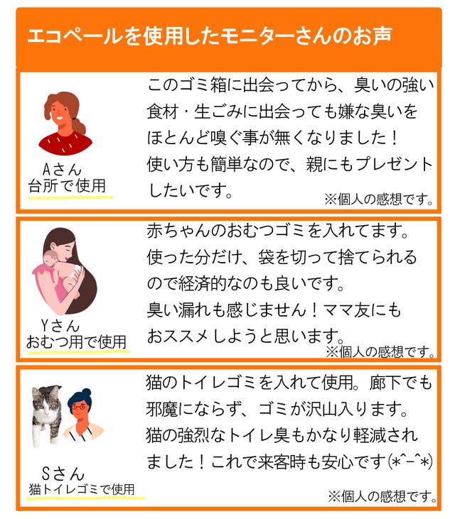 今回のプロジェクトは、私が1年中思い悩んでいた生ごみやペットゴミの悪臭対策が出来るエコペールです。あるのと無いのでは大違い!是非この機会にお試しいただきたいです。