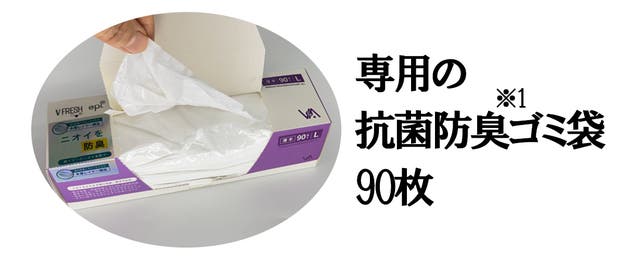 アンモニア消臭効果のあるゴミ袋が付属します。