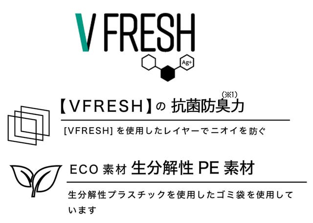 ポイント⑤ごみ袋に使用されている”抗菌防臭(※1)機能付きのVFRESH素材”が嫌な臭いを防ぐ
