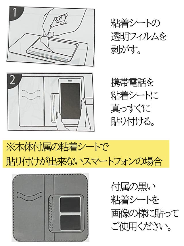 ※対応サイズは目安としてお考えください。外寸よりもスマホのサイズが小さい場合は装着が可能です。お使いのスマホサイズに対応している市販のTPU(熱可逆性ポリウレタン)・ポリカーボネイト・シリコンなどのスマホケースを貼り付けてご使用頂く方法が取外しも容易でおすすめです。