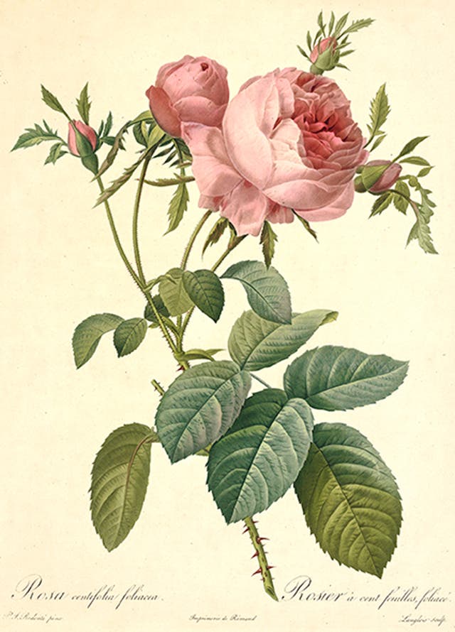 ジョゼフィーヌが、世界中からマルメゾン宮殿に集めたバラをルドゥーテに描かせて誕生したのが、ルドゥーテの代表作ともいえる 『 バラ図譜 』 [ Les Roses ] (1817-24年) 。